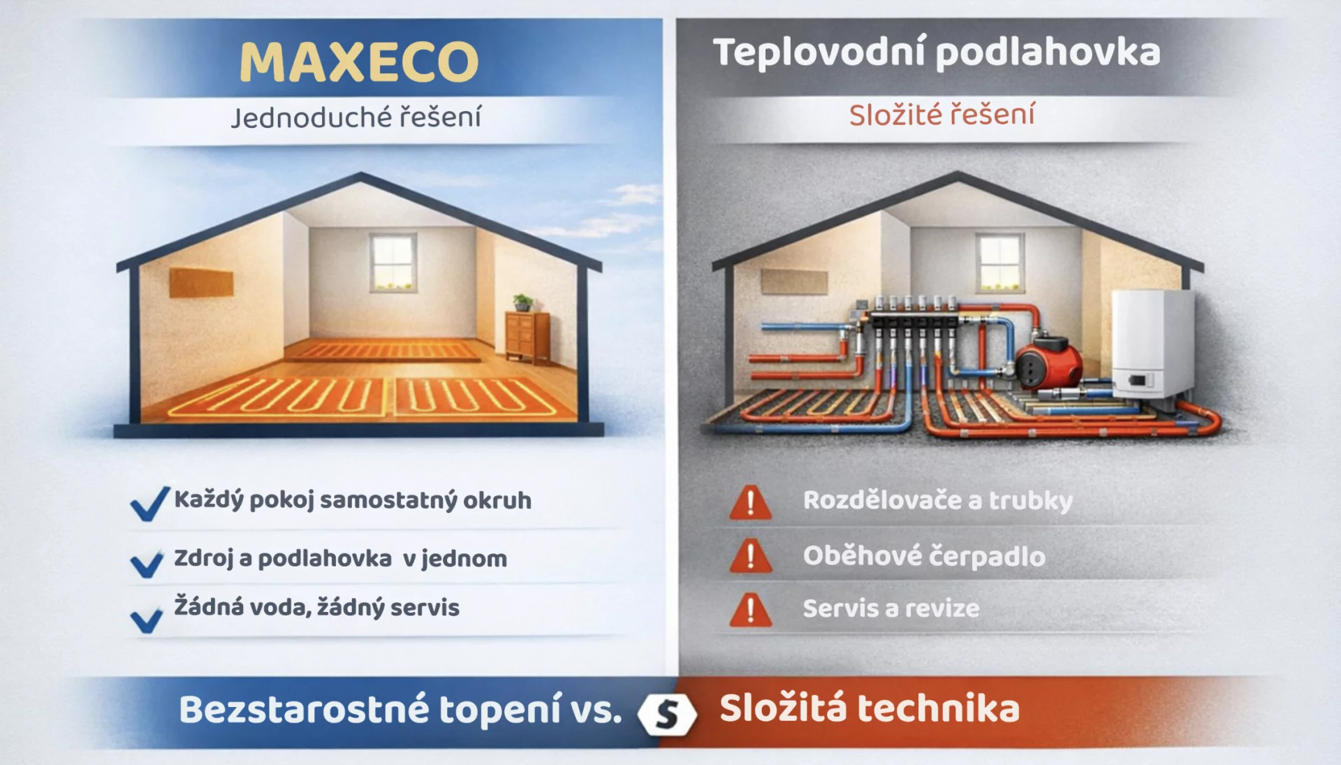 👉 MAXECO je ideální řešení právě tam, kde je nízká tepelná ztráta na m².